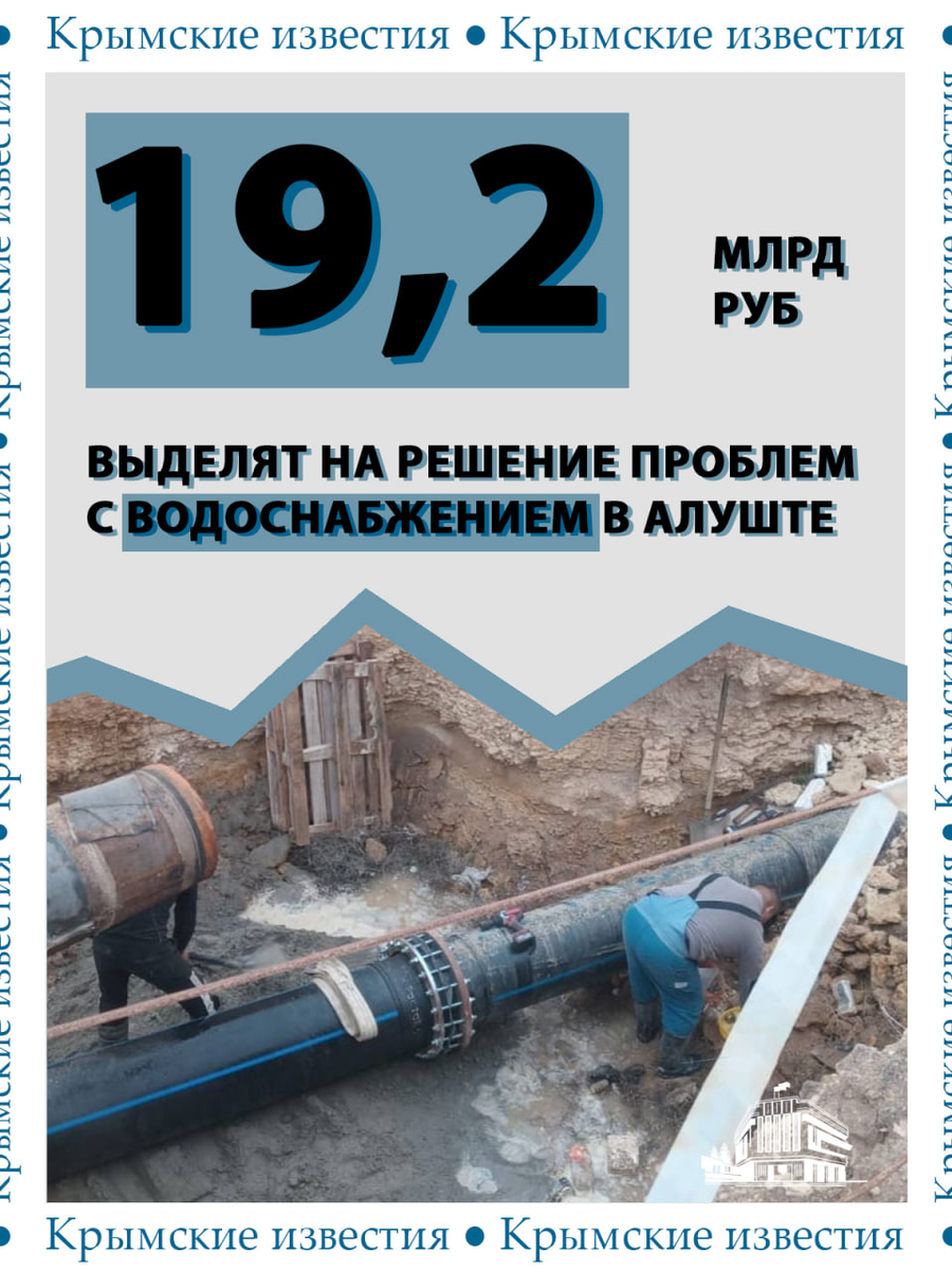 💧 19,2 млрд рублей выделят на решение проблем с водой в Алуште. Из которых 12,5 млрд уйдёт на строительство водохранилища в селе Солнечногорское. Большая часть средств пойдёт на создание резерва воды и снижение аварийности канализаций, сообщила глава администрации города Галина Огнёва. Какие именно предусмотрены работы ⬇️ ▪️ Больше 2,7 млрд рублей заложено на реконструкцию очистных в Алуште и ещё около 1,5 млрд – в Партените ▪️ В 1,9 млрд рублей обойдётся ремонт системы водоотведения в селе Малореченское ▪️ Почти 488 млн рублей будет стоить реконструкция насосной станции ▪️ Также планируется построить и восстановить канализацию в Изобильном и Приветном Мы в телеграм 👉 https://t.me/newcrimiz