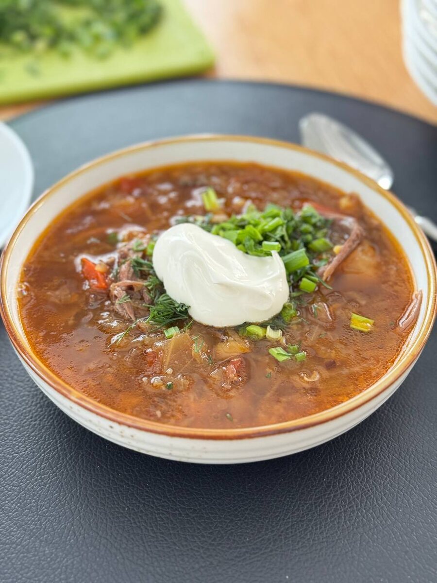 У нас так холодно, что готовить хочется только наваристые горяченные супы. Предлагаю вашему вниманию суп от бывшего шеф-повара «Царской охоты» (более 20 лет работы в этом ресторане) Дмитрия Каневского, у которого мне повезло учиться в своё время. Ингредиенты: ✔️Капуста квашеная кислая 1000г ✔️Хвосты телячьи свежемороженые 1000г ✔️Картофель сырой очищенный 250г ✔️Паста томатная 50г ✔️Перец красный сладкий 120г ✔️Лук репчатый пассерованный 130г ✔️Вода (овощной отвар) 5000л ✔️Тмин (семена) 10г ✔️Лист лавровый 3шт ✔️Соль по вкусу ✔️Сахар по вкусу ✔️Перец красный жгучий по вкусу ✔️Рассол капустный по вкусу Я готовлю все сразу как и советует шеф в мультиварке-скороварке под давлением с небольшими изменениями. Мне хватает на 5 литров (у шефа пропорции на 9-10литров). Я люблю щи густыми, на 750 гр хвостов беру столько же капусты, немного уменьшаю количество томат пасты и остальных овощей. Лук пассерую на топленом масле и в конце добавляю томатную пасту, ее тоже обжариваю. Готовим: 📌Капусту