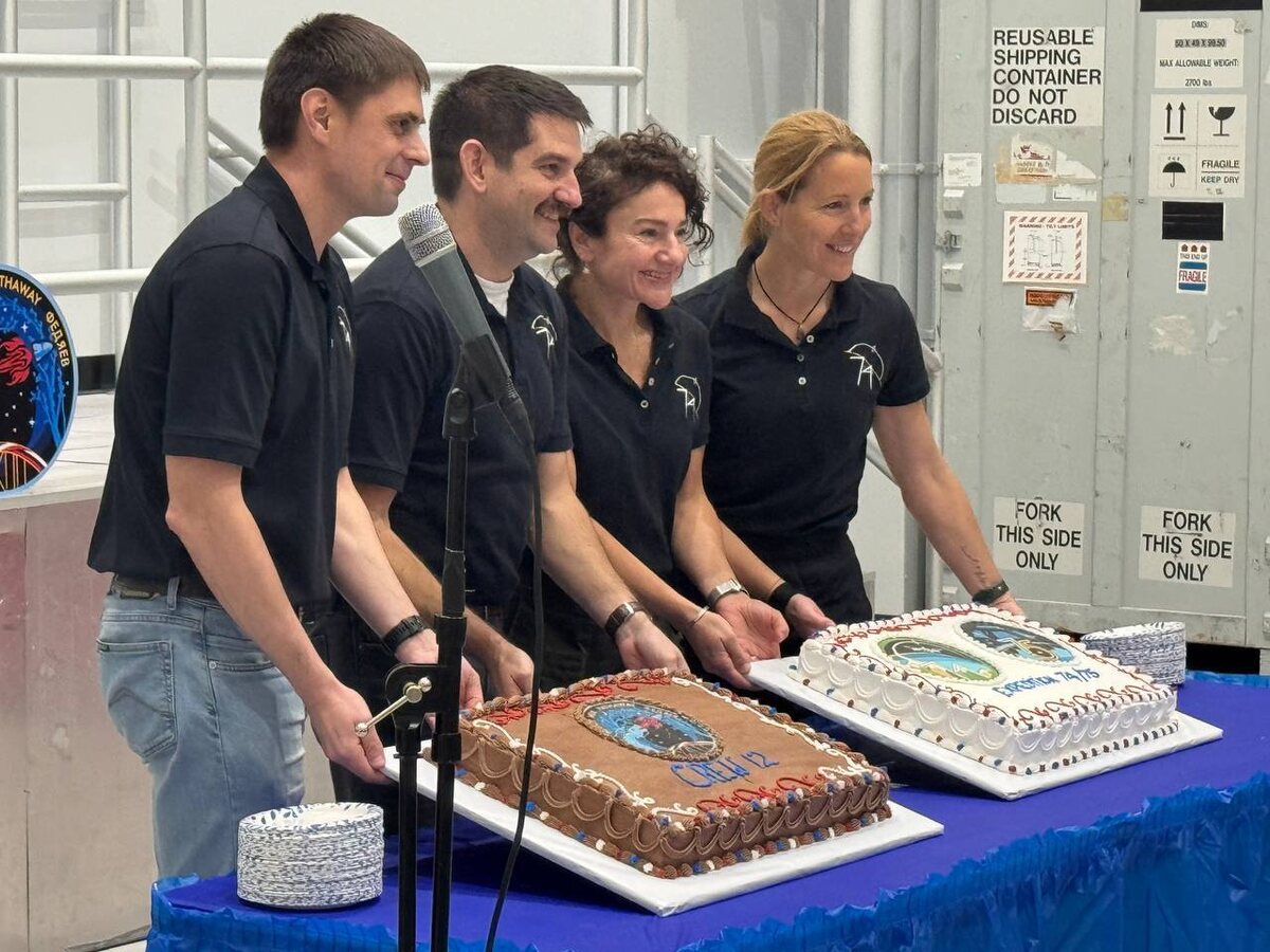 По традиции в финале подготовки в Космическом центре им. Л. Джонсона (США) экипаж участвует в cake-церемонии, для которой изготавливают торт с символикой предстоящей длительной экспедиции. На февраль 2026 года намечен старт пилотируемого корабля Crew Dragon. В состав экипажа Crew-12, помимо космонавта Роскосмоса Андрея Федяева, входят астронавты NASA Джессика Меир и Джек Хэтэуэй, а также астронавт ESA Софи Адено. Экипаж поблагодарил всех специалистов Центра им. Джонсона за подготовку и попробовал угощение. Центр подготовки космонавтов: ТГ | VK | Дзен | RuTube
