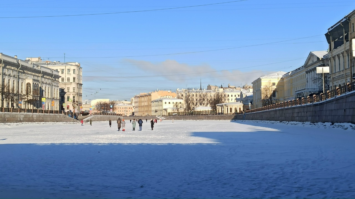 У нас в Петербурге стоят морозы. Местами было до -20. Люди выходят на лед Невы и каналов, катаются на коньках.