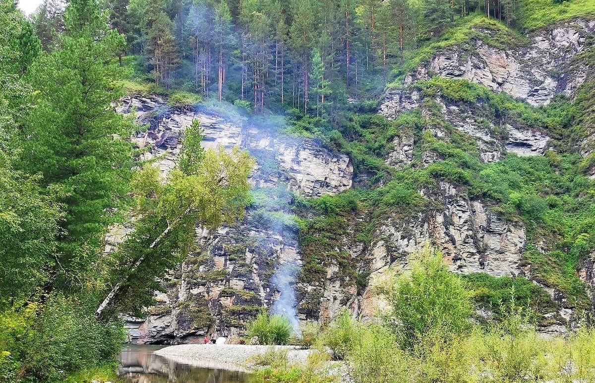 Большой Он. Отроги Кантегирского хребта🏞🌿 ✅ Подобные места - рай для любителей рыбалки, а ещё для скальных папоротников и прочих видов, предпочитающих вертикали и скальные трещины.😊🌱Даже в самые жаркие дни туманы, поднимающиеся от реки, обеспечивают растениям необходимую влажность. 🌏 Республика Хакасия, 2023🇷🇺