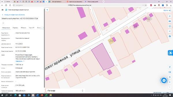 Название: Земельный участок – для индивидуального жилищного строительства, расположенный по адресу: Российская Федерация, Кемеровская