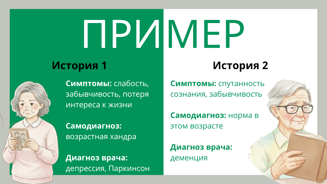 Стоит пожилому человеку пожаловаться на слабость, забывчивость или апатию, как многие семьи включают режим самодиагностики. «Это возраст», «само пройдет», «сами справимся» – эти фразы могут стать роковыми. За ними часто следуют месяцы упущенных возможностей, необратимого ухудшения здоровья и чувства вины. В этой статье мы разберем, какие особенности в поведении пожилого должны насторожить, ошибки, которые мешают принять помощь врачей, и чем это чревато. История 1. Через полгода прогрессирующих симптомов женщина 78 лет почти перестала вставать с кровати. Врач выявил тяжелую депрессию и прогрессирующую болезнь Паркинсона, которые можно было бы скорректировать значительно раньше. Полгода были потеряны. История 2. Когда мужчина 82 лет забыл дорогу домой, оказалось, что деменция уже достигла средней стадии. Лекарства, которые могли бы замедлить процесс на раннем этапе, теперь были менее эффективны. Потеряно несколько лет. Проблемы с планированием, мотивацией и критическим мышлением, утомл