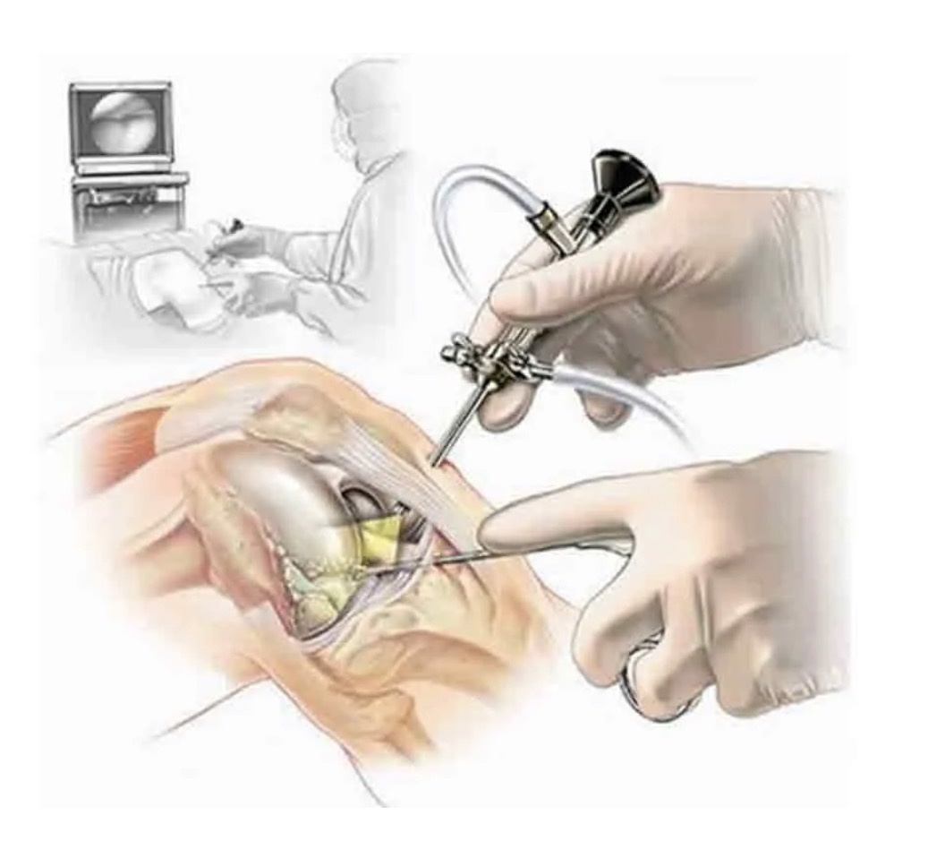 В любом случае, это осмотр некоей полости изнутри. Осмотр проводится с помощью камеры, в моей специальности это артроскоп. Его вводят в сустав (почти в любой) через прокол мягких тканей (кожа, клетчатка, капсула сустава). К артроскопу присоединен световод, через который подается свет внутрь сустава, а обратно получается изображение. Выводится картинка на монитор, своеобразная телетрансляция происходящего в суставе. Для лучшего обзора в полость сустава подается физраствор.