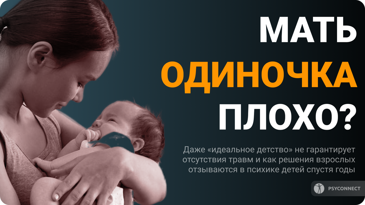 Тема о том, почему даже «идеальное детство» не гарантирует отсутствия внутренних травм и как решения взрослых отзываются в психике детей спустя годы. Сейчас многие женщины, так сказать, "рожают для себя". Как, например, моя родственница. И вроде бы все нормально было, вырос замечательный сын, получил хорошую профессию, мать замуж не вышла, опасаясь, что муж будет обижать ее ребенка. Но совсем недавно она узнала, что ее мальчик очень переживал, что он рос в неполной семье, причем в садике и в школе к нему очень хорошо относились, он был любимцем и душой любой компании. Но то, что у него не было отца, было, оказывается, душевной травмой... Не эгоизм ли это со стороны женщины "рожать для себя"? Источник: psyconnect.ru/topic/46654/ Ответ психолога Это не эгоизм по определению, но и не подвиг по умолчанию. Это решение со сложными последствиями, о которых обычно думают позже, чем следовало бы. Фраза "родить для себя" звучит бодро и современно, но психологически она лукавит. Ребенок никогда н