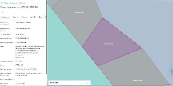 Название: Земельный участок с кадастровым номером 51:19:0010208:123, площадью 825 кв.м, категория земель – земли населенных пунктов