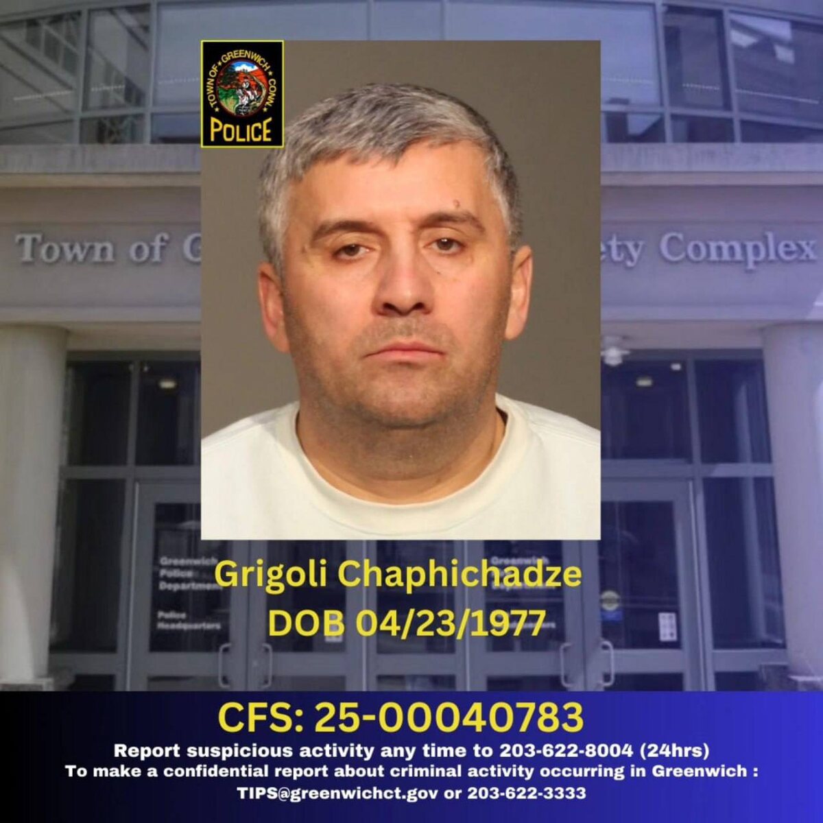 48-летний Григол Чапичадзе был задержан полицией Гринвича после длительного расследования серии ограблений жилых домов, начавшегося в октябре 2025 года. Ему инкриминируют кражи и сговор, а общая стоимость похищенного оценивается в 1 015 115 долларов. Суд установил залог в 5 миллионов долларов. Не забудьте подписаться ✍️