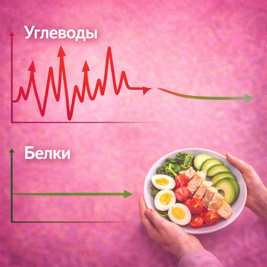 Белки и жиры перевариваются медленно. Они не вызывают резких скачков сахара.
