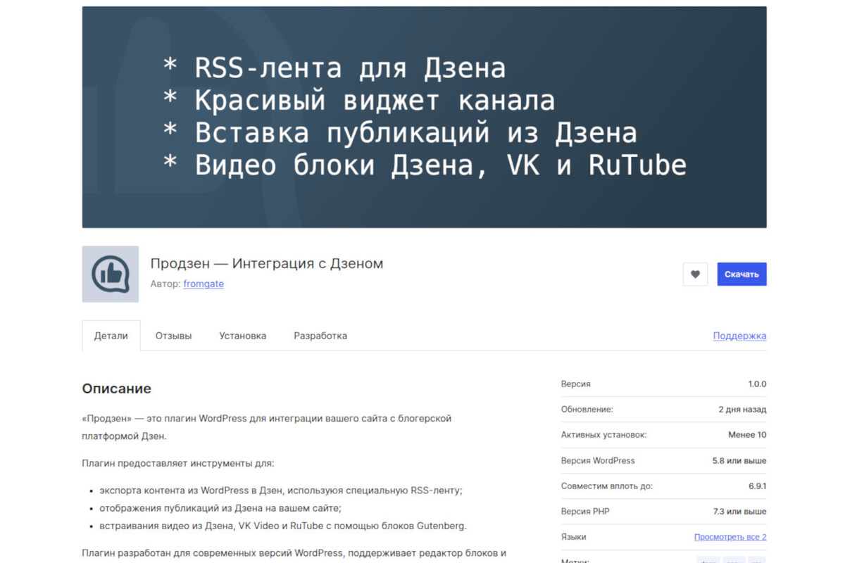 Дорогие друзья, у меня сегодня день рождения, и я решил сделать вам подарок — официально представить свою последнюю разработку. Это плагин для WordPress, над которым я работал несколько месяцев, и на днях опубликовал в официальном репозитории. На своих сайтах я давно пользовался разными плагинами, которые решают вопросы интеграции с Дзеном, но в какой-то момент понял, что я всё больше и больше их дорабатываю под свои нужды, и в итоге написал один большой плагин, который будет решать всё, что нужно владельцу сайта, который ведёт канал в Дзене. Краткой набор возможностей выглядит так: Если вы читаете эту статью в Дзене, то отправил её в Дзен именно этот плагин. Он же прикрепил под статьёй подпись с призывом подписаться на канал. Это развитие идеи моего давнего плагина «Виджет для Дзена». Блоки можно размещать на сайдбаре, вставлять в статьи, а также поддерживается вставка статей в виде блока-превью. Плагин распознаёт ссылки и коды-вставки Дзена, ВК Видео, а также RuTube и преобразует их