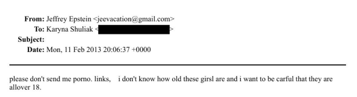 'Please don’t send me porn, I don’t know how old these girls are' — Epstein