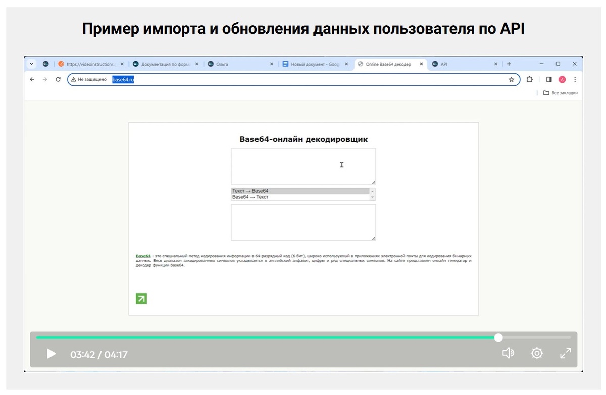 Представьте: у вас есть карточка пользователя, в нем, скажем, 20 полей. Надо обновить одно (данными из Битрикса). Сколько полей надо передать? Увы, правильно: 20. Потому что если передать одно (нужное) остальные (19) сотрутся. Ну, не чудо ли?) Но это не все. Думаете, можно просто так передать через вебхук данные в формате ключ=значение? Нет, это было бы скучно. Надо сначала зашифровать их в старый добрый Base64. Вишенка – мануал Геткурса, в котором в качестве инструмента кодирования предлагается сторонний сайт… Вобщем, с помощью нейронки и какой-то матери я, конечно, передачу данных в обе стороны настроил. Ну а через месяц-полтора собственное приложение напишем с командой. Раз уж случайн