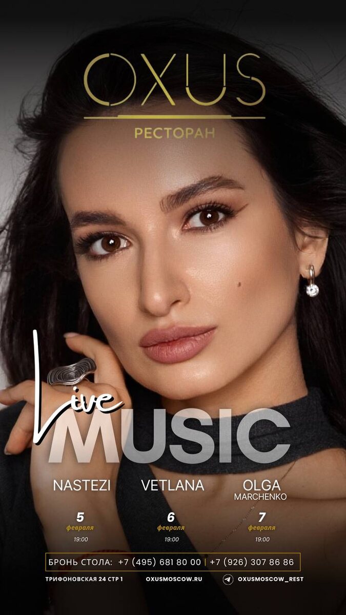 ! Теперь с четверга по субботу, с 19:00 до 22:00, мы приглашаем вас окунуться в мир мелодий и ритмов, созданных талантливыми музыкантами. Позвольте музыке наполнить ваши вечера яркими красками и великолепной кухней нашего заведения.🎼 Бронь столика в лс: Ресторан OXUS +7(495) 681 80 00 +7(926) 307 86 86 (TG) Сайт, telegram