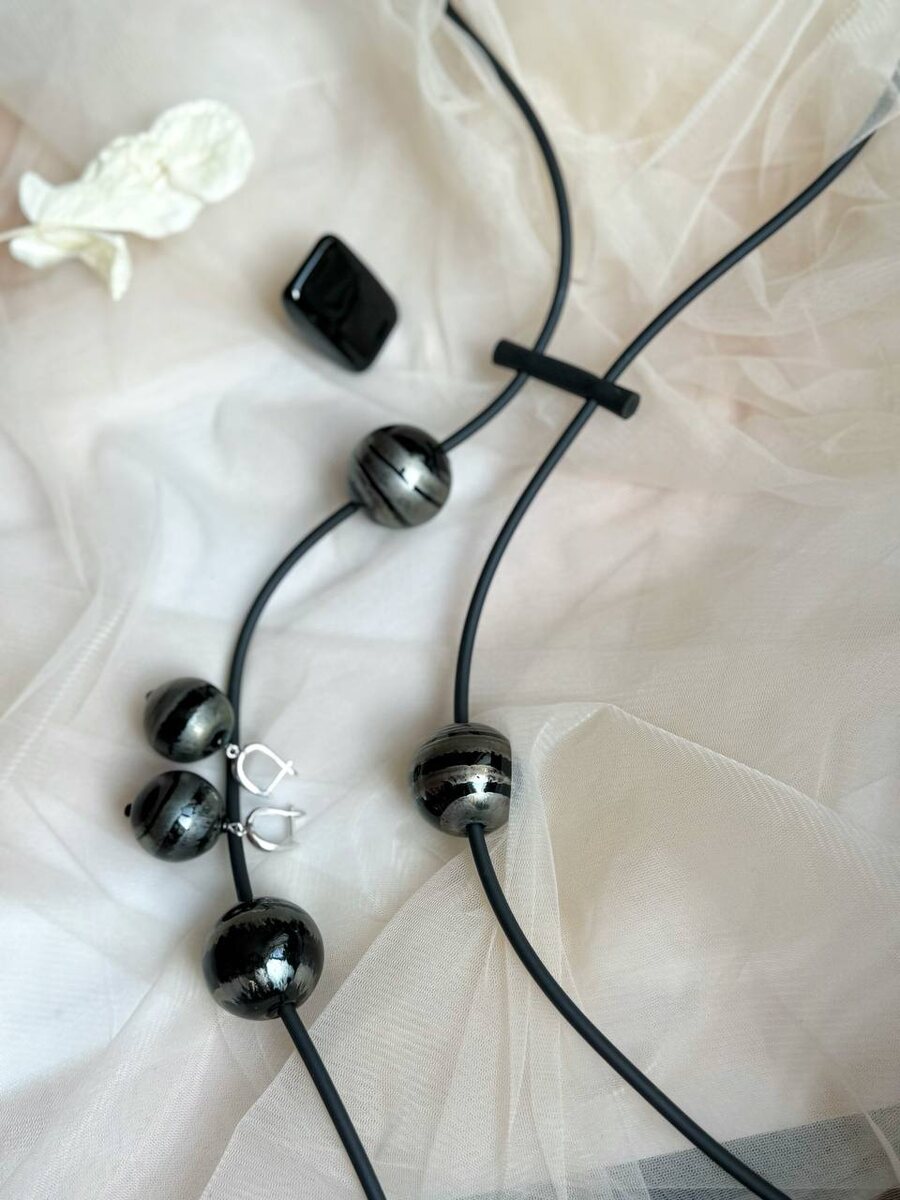 🌌 Гладкие шарообразные бусины с металлическим блеском — без лишних деталей, но с характером. Это колье работает как финальный штрих: вытягивает линию шеи, добавляет строгости и делает образ собранным даже без макияжа и сложной укладки. Холодный блеск смотрится дорого и спокойно — именно за это его любят. Лучше всего сочетается с чёрным жакетом, белой рубашкой, лаконичным серым платьем или плотным трикотажем. 🖤 Колье 4500-15%=3825 Серьги 3000 -15%=2550 Кольцо 4500-15%=3825 ✨Нажмите для заказа ✉️ Нажмите чтобы задать вопрос