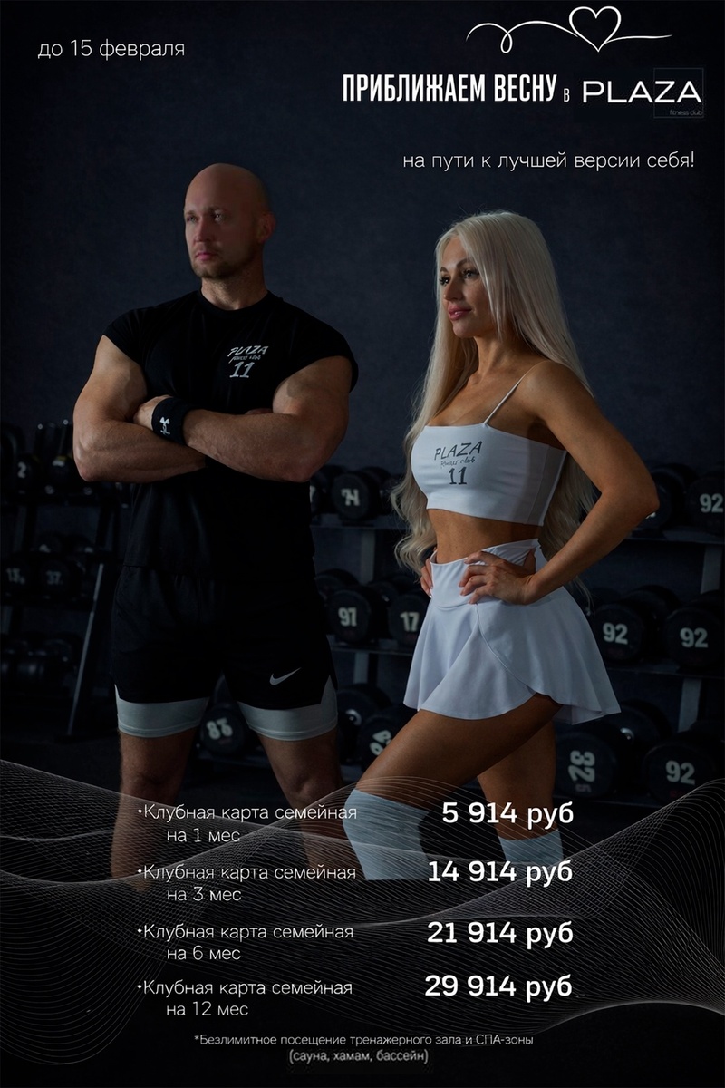 Подарок ко Дню святого Валентина: фитнес-клуб «ПЛАЗА» запустил акцию на семейные абонементы