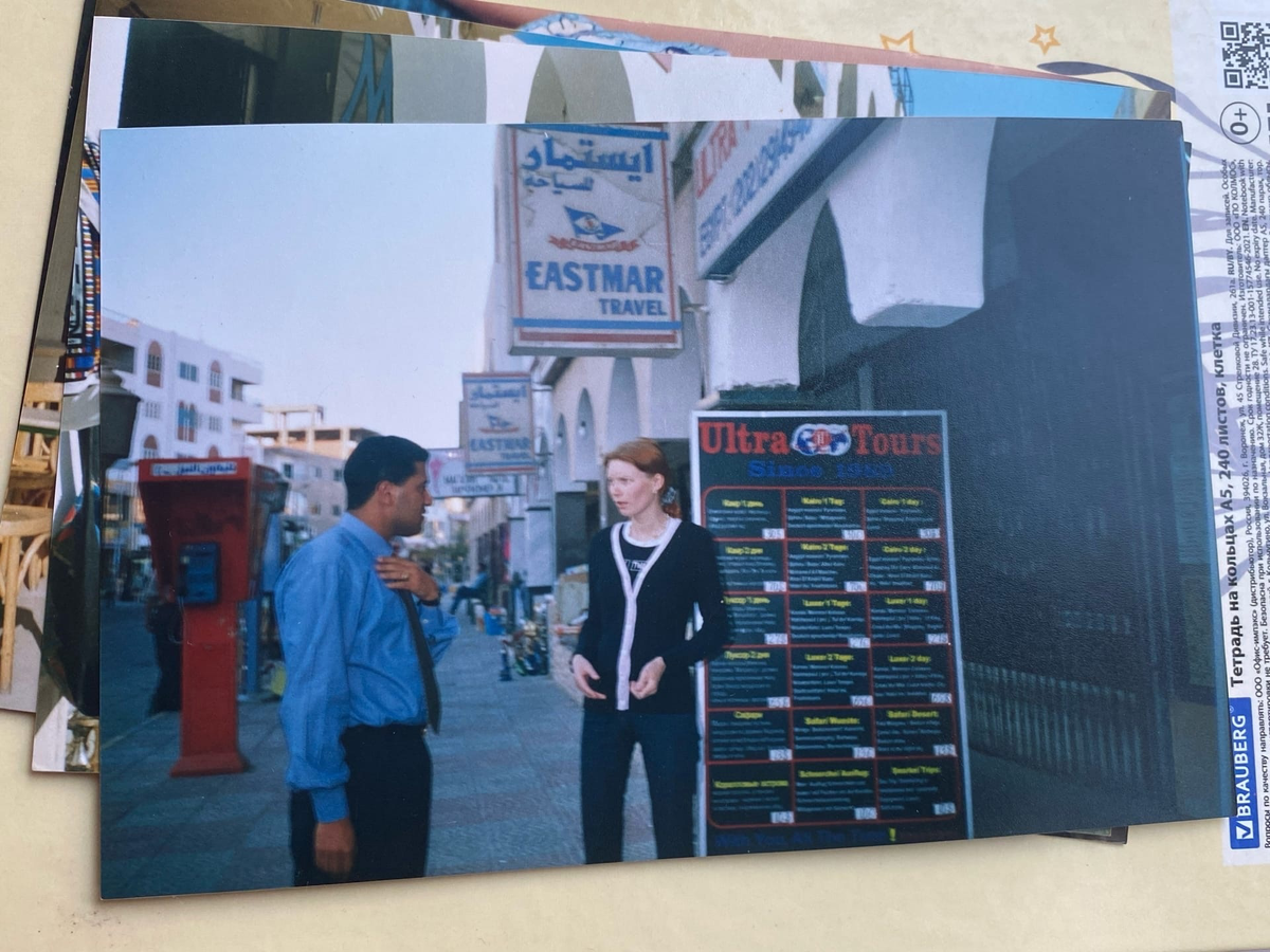 Да и был Мунир, водитель из соседнего офиса компании «Eastmar travel», он долгое долгое время просто проходил мимо, потом стал заходить и дарить мне что-то из изделий бедуинов. Он возил туристов на сафари в пустыню, покупал там разные фенечки или бусы из бисера, потом дарил мне. Мунир – это такой египетский Бельмондо с очарованием Омара Шерифа, только он Мунир, то есть сам по себе. К нему приезжала русская балерина со своей дочкой. Это были самые лёгкие на свете отношения, они просто друг другу очень были понятны и очень друг другу нравились. Её дочь, лет шести девочка, приходила к нам и зачитывала по памяти аяты Корана, понятно дело, на арабском. Помню, как-то, когда они уже собирались улететь в Москву, балерина решила купить инкрустированный столик и смело отправилась за ним в Дахар, купила и взяла маршрутку, чтоб довезти его до гостиницы (в те времена, не было ещё такого количества таксомоторов) и тут начались ожидаемые неприятности. Водитель не мог предположить, что хрупкая русская женщина так хорошо владеет арабским матом, лишних денег снять с неё не удалось, зато она повеселилась, да и мы все.