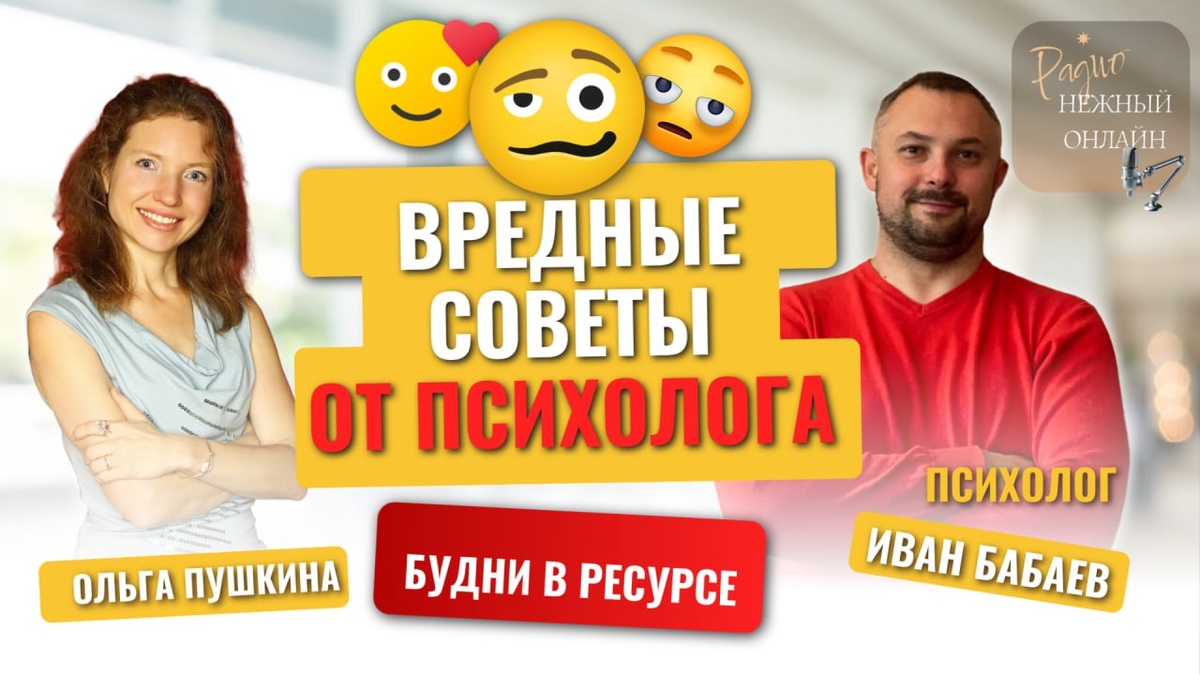 - Не делай того, что делать не хочется. - Всегда думай позитивно. - Если он тебя обманул - сразу уходи от него. Обманул один раз - обманет и второй, - вы точно не раз слышали подобные советы. И раздают их вовсе не ваши знакомые, увлечённые популярной психологией, но и самые настоящие специалисты. А ведь подобные простые решения нередко не только не помогают, но и напротив - могут сломать жизнь. Так нужно ли слушать советы психолога, и если да, то - когда? И как ими грамотно распоряжаться? ⏰ Сегодня, 5 февраля, в 15:00 мск, будем разбираться вместе с практикующим психологом и мастером НЛП Иваном Бабаевым в рубрике БУДНИ В РЕСУРСЕ ☕️ на радио "Нежный онлайн" Чтобы получить возможность задать Ивану вопрос, обязательно ПРИХОДИТЕ ОНЛАЙН