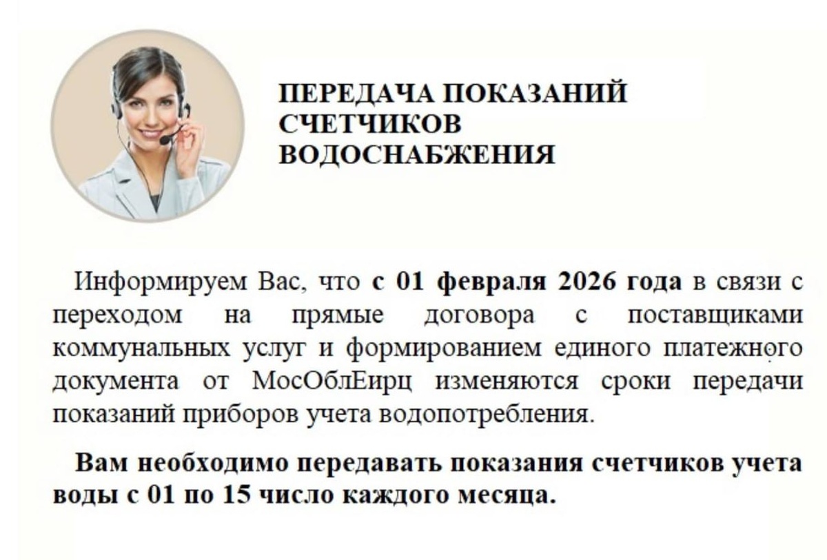 Напоминаем о том, что данные по потреблению воды теперь нужно передавать с 1 по 15 число каждого месяца
