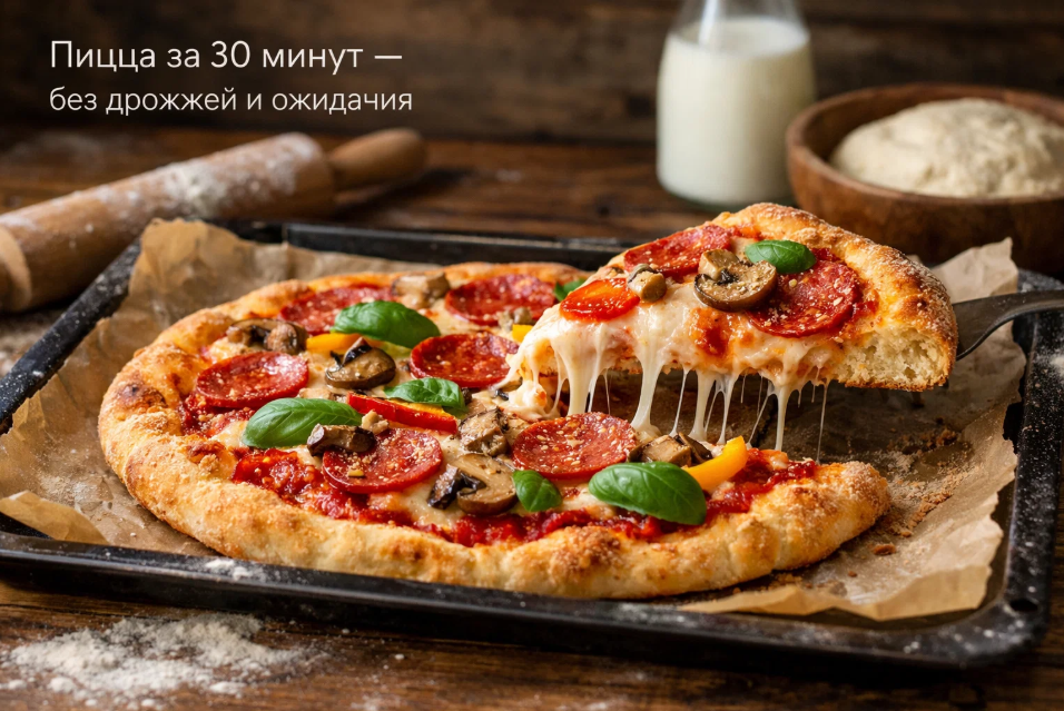 Знаете, что меня всегда останавливало от домашней пиццы? Это бесконечное ожидание, пока дрожжевое тесто соизволит подняться. Сначала замес, потом час на расстойку, потом ещё раз помять и снова ждать. К тому моменту, когда тесто наконец готово, есть уже не хочется, а хочется просто лечь и отдохнуть от всей этой возни. Именно поэтому я долго искала альтернативу и нашла её в самом неожиданном месте — в обычном кефире, который стоял в холодильнике.