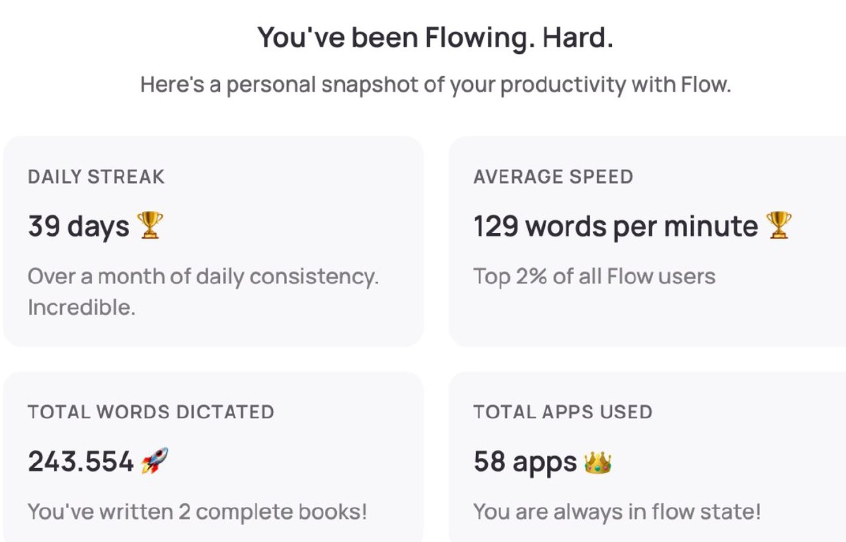 📝 Кратко: Автор блога Modulovalue Модестас Валаускас рассказал, что за последние 39 дней он надиктовал 243 554 слова, что примерно равно объёму двух книг. Он использовал тестовое приложение для диктовки Wispr Flow. Читать далее 🔗 Читать оригинальную статью (ссылка) 📊 Источник: Habr ⏰ Время: 05.02.2026 09:17 📱 Другие каналы: 🪙 ВКрипту | 🎮 ВИгрухи | 🏎️ ВТачки | ✈️ ВТравелу #gadgets #гаджеты #технологии