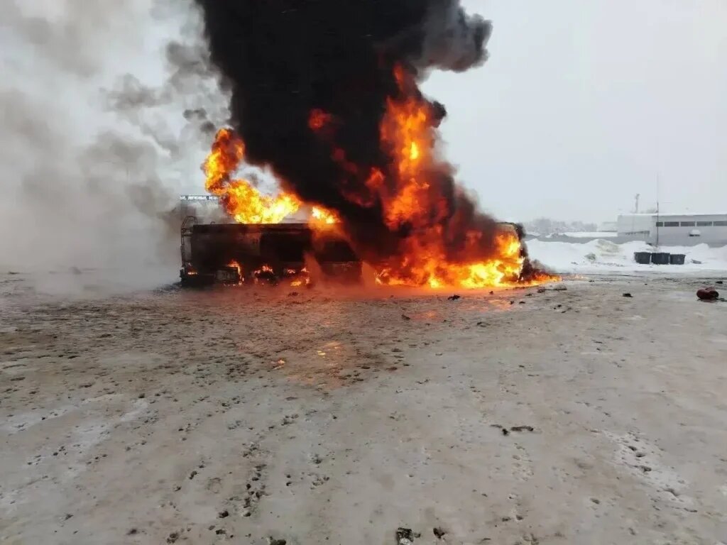 Бензовоз «МАЗ» загорелся на территории автозаправочной станции в поселке Солнечный Сургутского района. Проводится проверка инцидента с двумя пострадавшими. Прокуратура ХМАО-Югры сообщает, что в результате возгорания грузового автомобиля на АЗС травмированы два человека. Их, по сообщению ведомства, доставили в больницу. О подробностях инцидента на АЗС сообщило ГУ МЧС России по ХМАО-Югре. «5 февраля в 11:59 диспетчеру ЕДДС Сургутского гарнизона поступило сообщение о возгорании бензовоза в поселке Солнечном на улице Строителей. Первое подразделение прибыло через три минуты, наблюдалось горение грузового автомобиля», – рассказали в пресс-службе ведомства. В 12:25 спасателям удалось локализовать возгорание на площади 150 квадратных метров, ликвидация открытого горения произошла в 12:41. В тушении участвовали 5 единиц техники и 20 человек личного состава МЧС России. Фото: ГУ МЧС России по ХМАО-Югре Прокуратура Сургутского района проводит проверку по факту произошедшего инцидента. Ведомство о