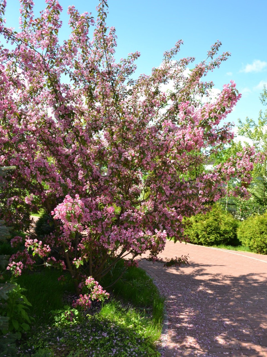 Секрет в её родословной. Это не просто сорт, это триумф селекции, объединивший гены дикой сибирской ягодной яблони и восточной красавицы. От «дички» она унаследовала абсолютное бессмертие в суровом климате, а от культурных предков — свою невероятную внешность. Вы замечали, что большинство растений в саду — зеленые? Ранетка Пурпуровая играет по своим правилам. Её листья перенасыщены антоцианами. · Что это дает вам? Весной дерево выглядит так, будто его окунули в ч