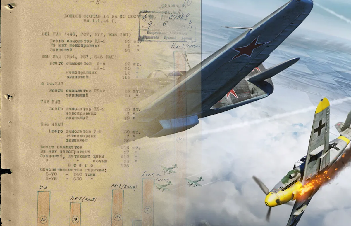Всего получается 355 исправных самолётов (в т.ч.94 истребителя, 55 штурмовиков и 168 У-2) и 69 неисправных.