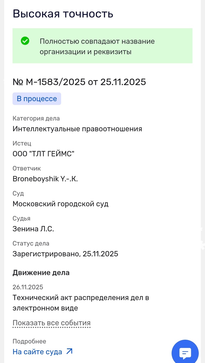 Бронебойщик говорил про "очень неравнодушного игрока", который ему и сообщил про суд. Скрывать не буду - это я.