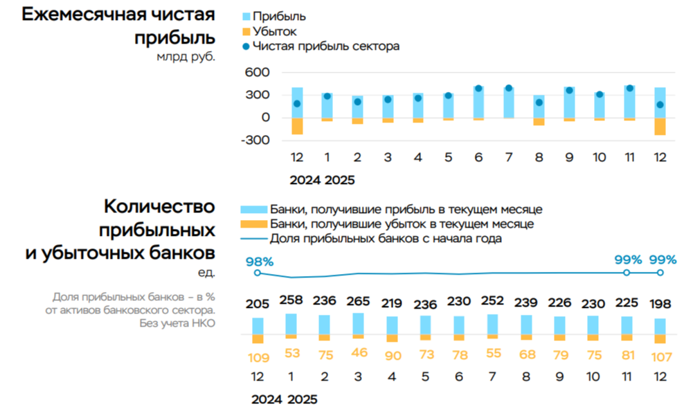 Чистая прибыль банковского сектора в декабре 2025 г. — снизилась из-за отчислений в резервы/операционных расходов. Ждём дивидендов от банков