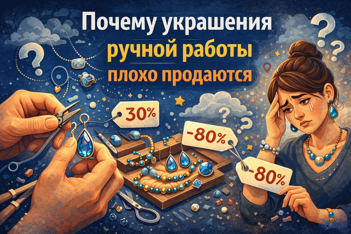 Ниша украшений ручной работы часто выглядит перспективной: красивый продукт, вложено много души, времени и сил. При этом многие мастера сталкиваются с одной и той же ситуацией — активность есть, а стабильных продаж нет. Ведутся соцсети, снимаются видео, пробуются разные форматы, но результата это почти не даёт. Это создаёт ощущение, что рынок «сложный» или «перегретый», хотя на самом деле проблема глубже.