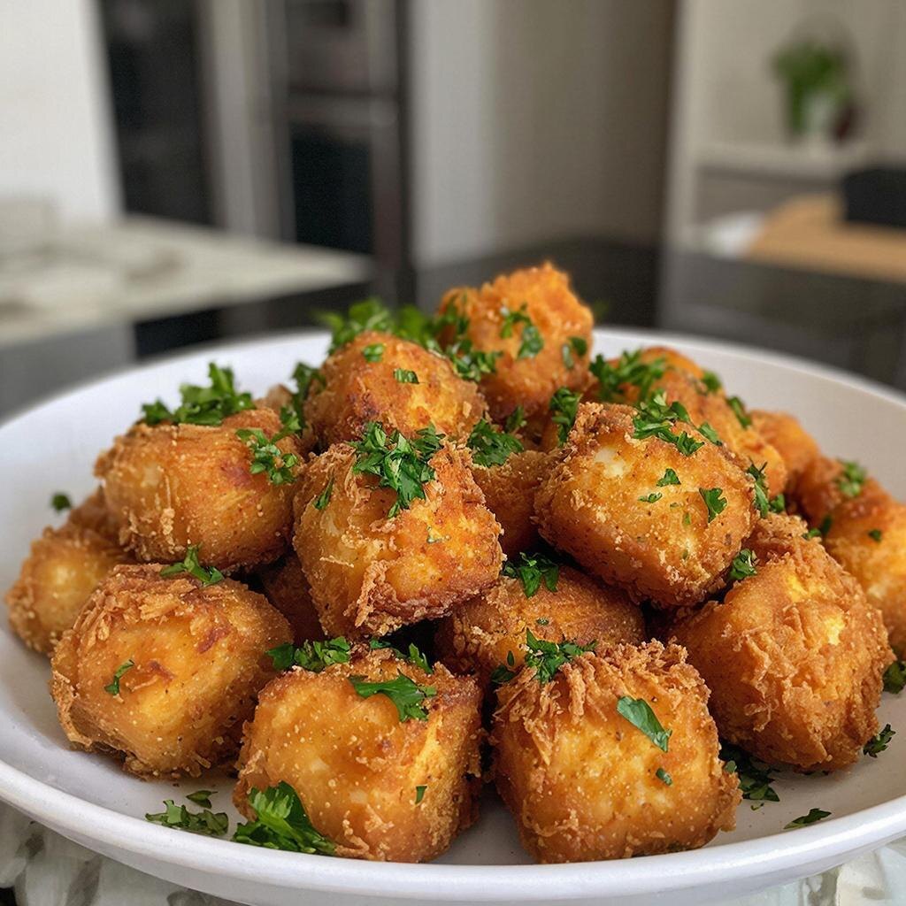 После обжарки выложите готовые кубики на бумажное полотенце, чтобы удалить излишки жира. Так они останутся сочными и мягкими внутри, сохранив хрустящую оболочку снаружи. 🚬