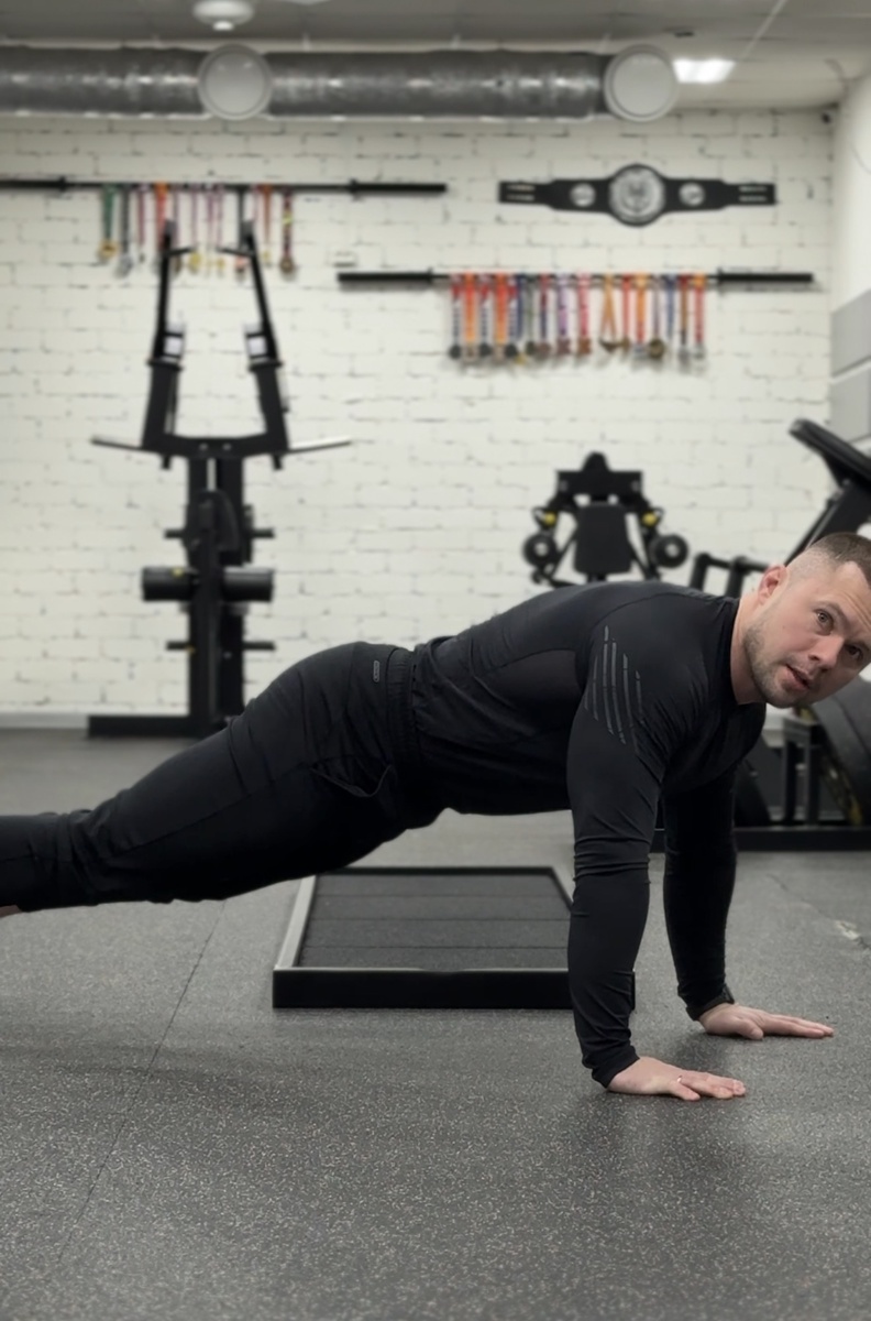 - План-максимум: Добавьте вариативность. Попробуйте отжимания с паузой в нижней точке, с постановкой рук на возвышение или неполную амплитуду для дополнительного контроля.