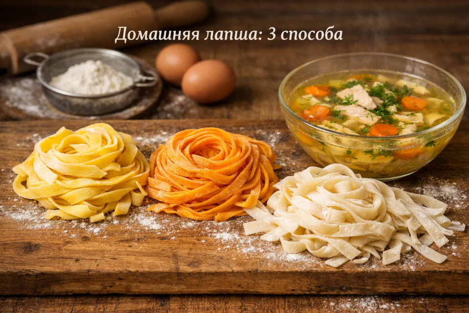 Сегодня хочу поделиться тремя способами приготовления домашней лапши, которые я использую в зависимости от ситуации и настроения. Каждый из них хорош по-своему, и у каждого есть свои особенности. Расскажу подробно, со всеми нюансами, которые узнала на собственном опыте — иногда через ошибки и неудачи.