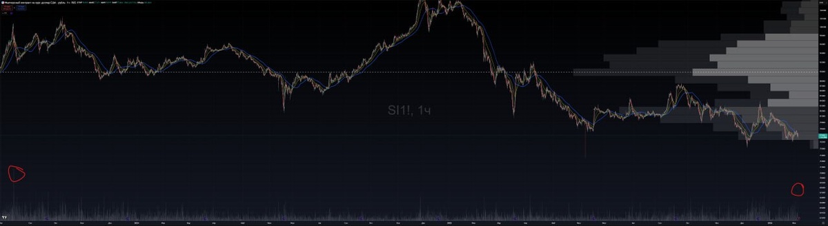 Во фьючерсе на доллар (часовом графике) прошли самые крупные объемы с августа 2023 года
