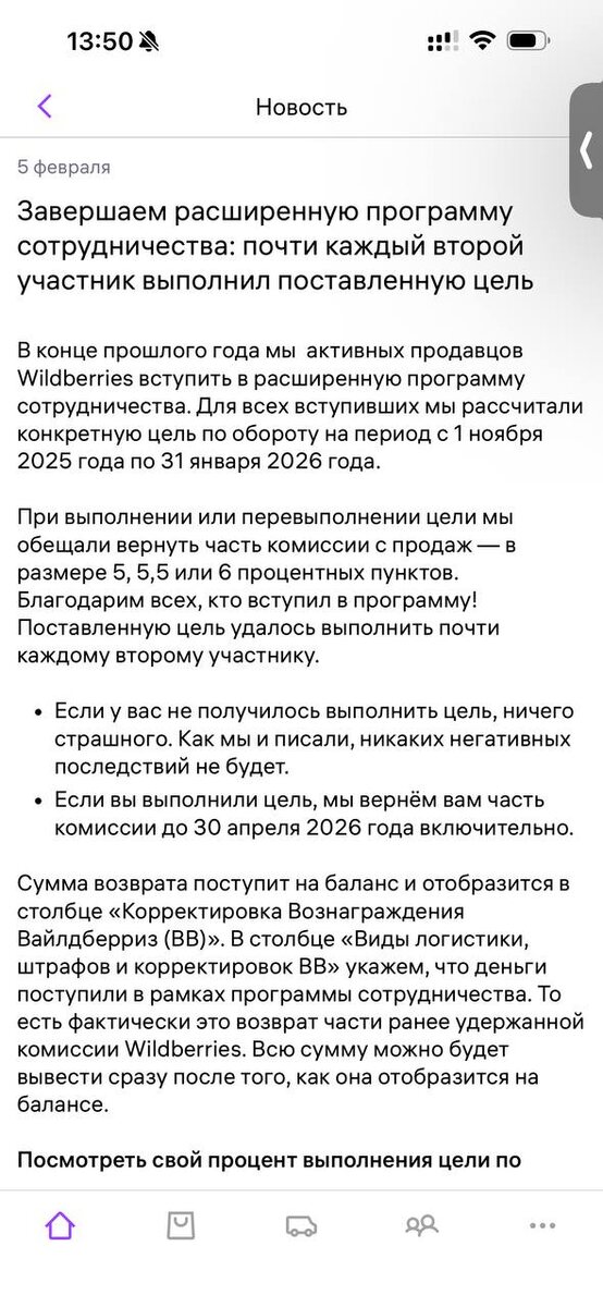 ⬜️ WB говорит, что программу выполнили 50% от подписавших ИУ для бедных.