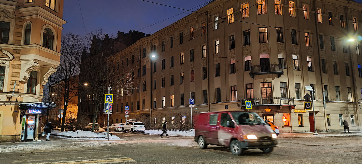 Храм же находится по этой улице, но в другую сторону от Английского проспекта. Улицы сейчас там тёмные. Хорошо, что мы поехали втроём. Как-то приятнее идти 😀.