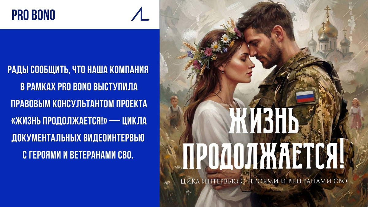 Рады сообщить, что наша компания в рамках Pro Bono выступила правовым консультантом проекта «Жизнь продолжается!» — цикла документальных видеоинтервью с героями и ветеранами СВО. Это разговоры о страхе и выборе, ответственности, любви и семье, мечтах и планах на будущее — о том, что помогает сохранить человеческое достоинство и внутреннюю опору после пережитого. Нам важно поддержать этот проект, направленный на сохранение современной истории нашей страны и личных историй ее героев. Подписывайтесь на Telegram-канал проекта и следите за ходом его реализации. 🦈💙