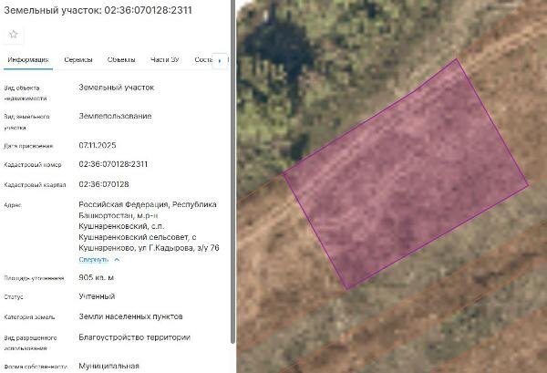 Название: Земельный участок с кадастровым номером 02:36:070128:2311 площадь 905 по адресу Российская Федерация, Республика Башкортостан