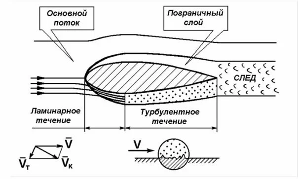 Пограничный слой — это тонкий слой вязкой жидкости или газа, образующийся непосредственно у поверхности обтекаемого твёрдого тела. Характеризуется сильным градиентом скорости потока: скорость меняется от нулевой на поверхности до скорости потока вне пограничного слоя.2453
