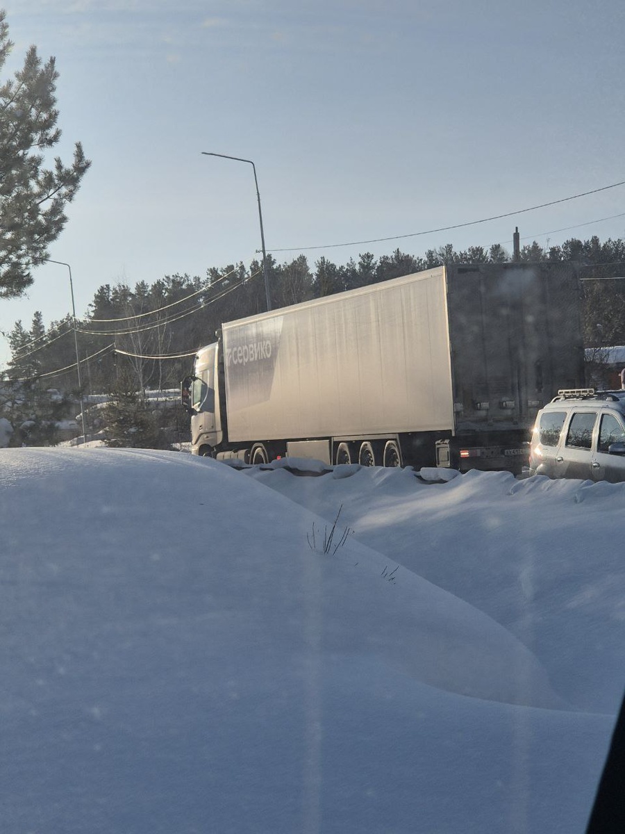 На Гавани (сразу после кафе "Среднеуральское" фура не может подняться в гору