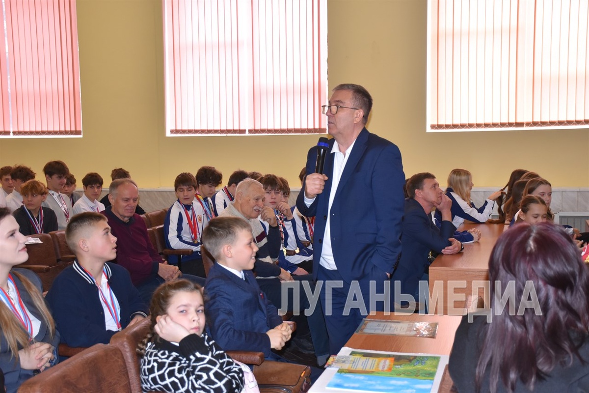 В Перевальске вновь прошел прием одаренных детей главой муниципалитета Виталием Михайловым. Это уже четвертая встреча с талантливыми юными жителями округа. В этот день чествовали 78 ребят. По традиции в зале собрались те, кто стоит за детскими успехами: тренеры, педагоги, директора школ, родители, а также начальники отделов по ОЖД населенных пунктов округа. Торжественная церемония стартовала после гимнов РФ и ЛНР. Парад успеха открыли участники коллектива «Сувенир» из Фащевского клуба «Горняк». Ребята играют на ложках и благодаря своему таланту в прошлом году стали победителями международного конкурса Центра творческого развития «АРТ птица». Без лишних слов девчонки и мальчишки показали зрителям, на что способны. Каждый выход на сцену зал встречал овациями. В этот день чествовали победителей и призеров республиканских природоохранных, спортивных и творческих конкурсов. Отдельно отметили поступок трех смелых девчонок из Чернухино – Карины Иванниковой, Альбины Савицкой и Вероники Остапе