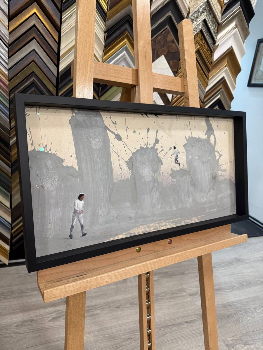 🖼️ Картина — Петра Ивановича Беленка (1938–1991), одного из ключевых художников советского нонконформизма. С конца 1960-х, после переезда в Москву, начинается его самый сильный и узнаваемый период. Беленок создаёт собственный язык, который называл «паническим реализмом»: тревожные, почти космические пространства, человек перед стихией, ощущение внутреннего напряжения и хрупкости мира. 🌌⚡ Для такой работы важно было подчеркнуть её концептуальность и коллекционную значимость, не перегружая оформление. Поэтому выбрали: ▪️ минималистичный чёрный багет с глубоким бортом, который дополнительно углубили, чтобы стекло не касалось красочного слоя 🖤 ▪️ формат deep shadow box — добавляет воздуха, и пространство картины будто зависает внутри рамы ✨ ▪️ музейное стекло с УФ-защитой — для максимальной сохранности 🛡️ В итоге — строгая, графичная, «тихая» рама, которая полностью концентрирует внимание на произведении. 🎯 Именно так и должно работать профессиональное оформление: деликатно, музе