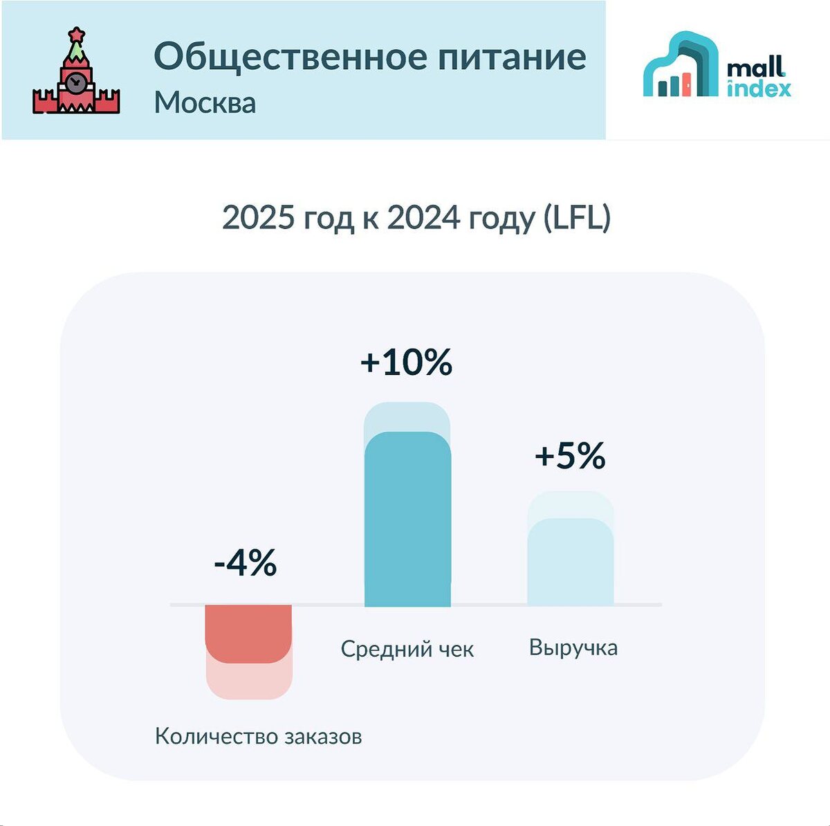 Москва | 2025 к 2024 (LFL) 📉 Количество заказов: –4% 📈 Средний чек: +10% 💰 Выручка: +5% Гости стали реже ходить в заведения, но тратят больше за визит. Рост выручки — в основном инфляционный, а не за счёт расширения аудитории. ⚙️ Давление издержек (аренда, ФОТ, продукты) остаётся ключевым фактором. 🏷 Более устойчивы форматы с понятным ценовым предложением и высокой оборачиваемостью. Часть спроса смещается в более доступные сегменты. «Выручка в общепите сейчас растёт преимущественно за счёт среднего чека. Снижение количества посещений говорит о более сдержанном и осознанном потреблении, а не о восстановлении спроса», — Михаил Васильев, Focus Technologies.