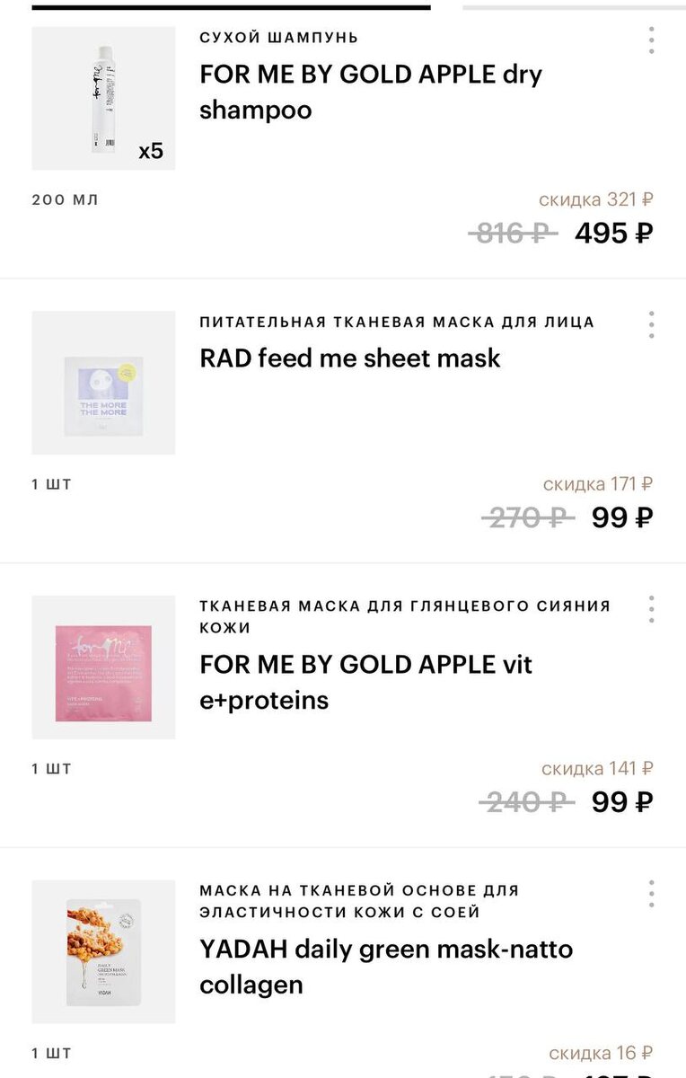 🙈 Сначала «висело» приложение, потом началась эпопея в корзине - то одного нет, то другого. В общем заказала, но даже не удивлюсь, если часть заказа отменят. 5 штук сухих шампуней и расходники - тканевые масочки. Гидрогелевые не успела, хотя люблю их больше. Как у вас успехи? Заказали что-то?