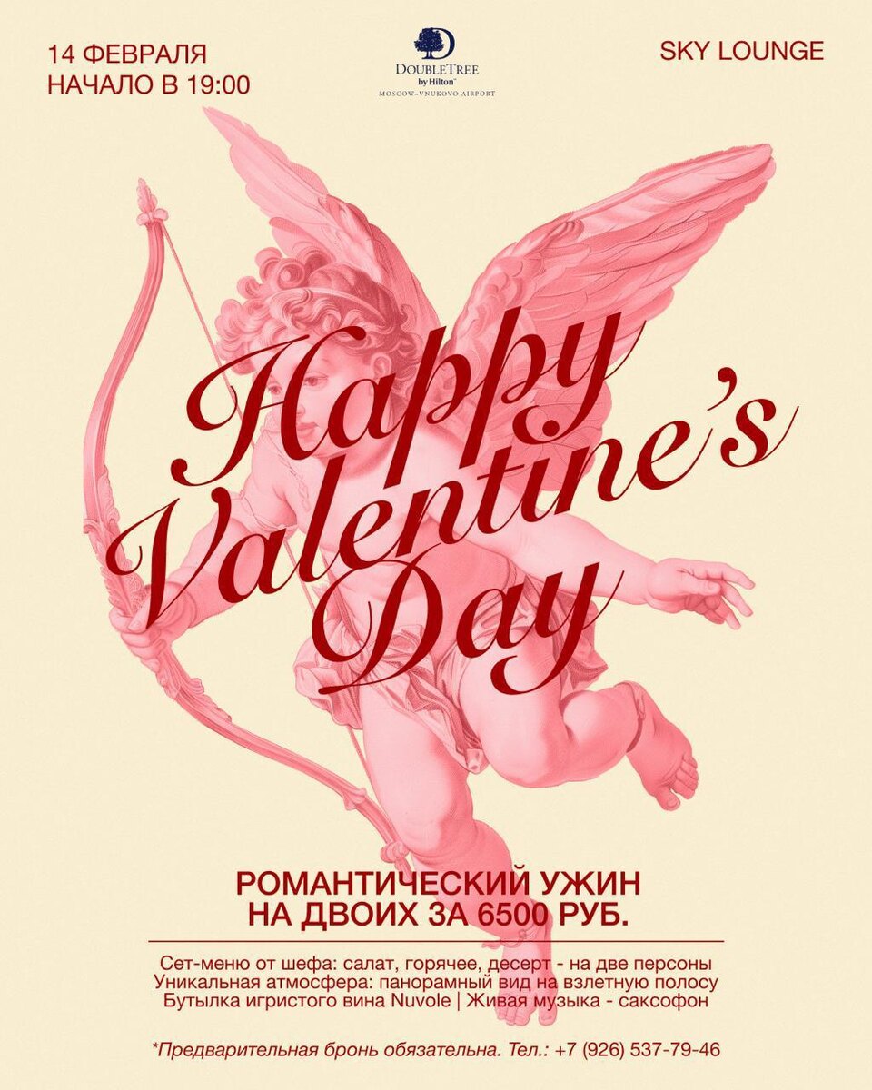 14 февраля в DoubleTree by Hilton Moscow – Vnukovo Airport — романтический ужин на двоих в Sky Lounge: живая музыка, панорамный вид на
