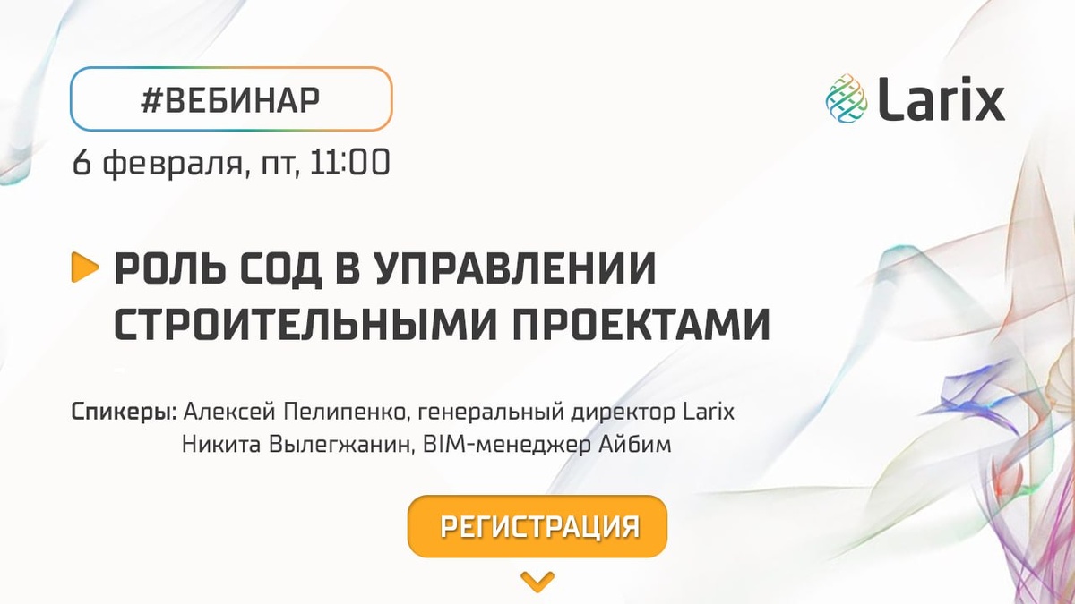 " 🗓 Когда: 6 февраля, пт, 11:00 (МСК) Организация хранения и обмена информацией в рамках проектов напрямую влияет на сроки и бюджет. Многие компании уже нашли эффективные решения и получают ощутимую экономию. На вебинаре разберем, как внедрение Среды Общих Данных (СОД) помогает снизить издержки и повысить управляемость проектов: 🟠Где теряются деньги и время: версионность файлов, отсутствие согласований и контроля изменений; 🟠Чем СОД отличается от "папок, чатов, дисков": централизованное управление данными как единым источником достоверной информации; 🟠Чек-лист для выбора СОД: ключевые критерии оценки платформы под задачи вашей компании; 🟠Как СОД связывает управление процессами в компании на всех этапах проекта; 🟠Бизнес-эффект: какие KPI улучшаются после внедрения СОД; 🟠Larix.Nexus: практические сценарии использования и план развития продукта на I квартал 2026 года. Спикеры: Алексей Пелипенко — генеральный директор Larix Никита Вылегжанин — BIM-менеджер Айбим Участие беспла