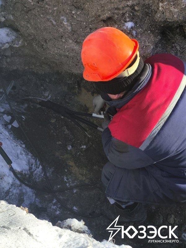 Специалисты «Луганскэнерго» филиала АО «Юго-Западная Электросетевая Компания» отремонтировали кабельную линию в экстремальных морозных условиях Зима, ветер, сильный мороз… Работу на улице в такую пору выдержит не каждый. Но энергетики - люди особой закалки. Они ремонтируют сети, несмотря на то, что приходится работать в самых суровых условиях. Ведь от них зависит электроснабжение потребителей – а значит их жизнь, здоровье и безопасность. На днях энергетикам пришлось в срочном порядке ремонтировать кабельную линию в Луганске, от которой запитаны не только бытовые потребители, но и два учебных заведения, а также котельная. На улице минус 20, земля, как бетон. В месте аварии грунт промерз на полметра. Обычной лопатой его не возьмешь, приходится разогревать паром или горячей водой. Отремонтировать саму кабельную линию (КЛ) в такую погоду – тоже задача не из легких. Изоляция теряет эластичность: гибкий летом кабель на морозе может треснуть при изгибе. Поэтому его приходится предварительно р