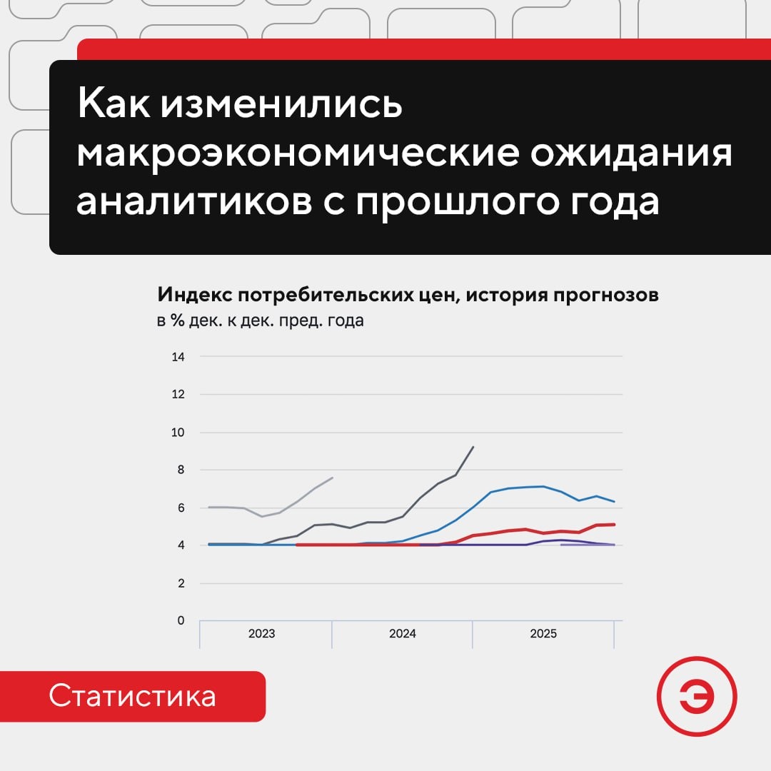 макроэкономического опроса, проведенного 30 января – 3 февраля 2026 г. Что изменилось по сравнению с декабрьскими прогнозами: 📈 В декабре 2025 г. аналитики прогнозировали по итогам 2026 г. инфляцию на уровне 5,1%. В феврале 2026 г. прогноз повысился до 5,3%. 📈 Ухудшились и ожидания по части баланса консолидированного бюджета в 2026 г. В декабре аналитики прогнозировали дефицит на уровне 2,2% от ВВП, а в феврале – уже на уровне 2,5%. 💸 Изменились ожидания по части курса рубля: в декабре 2025-го прогнозировалось 90,3 руб./1 доллар США, в феврале рубль на протяжении 2026 г. видится аналитикам более крепким - 85 руб./1 доллар США. 📩 Прогнозы по ключевой ставке на текущий год остались с декабря неизменными: в среднем 14,1% годовых. Следующая публикация обновленных прогнозов – 11 марта. P.S. «Эксперт РА» участвует в макроэкономических опросах Банка России. #статистика #макроэкономика
