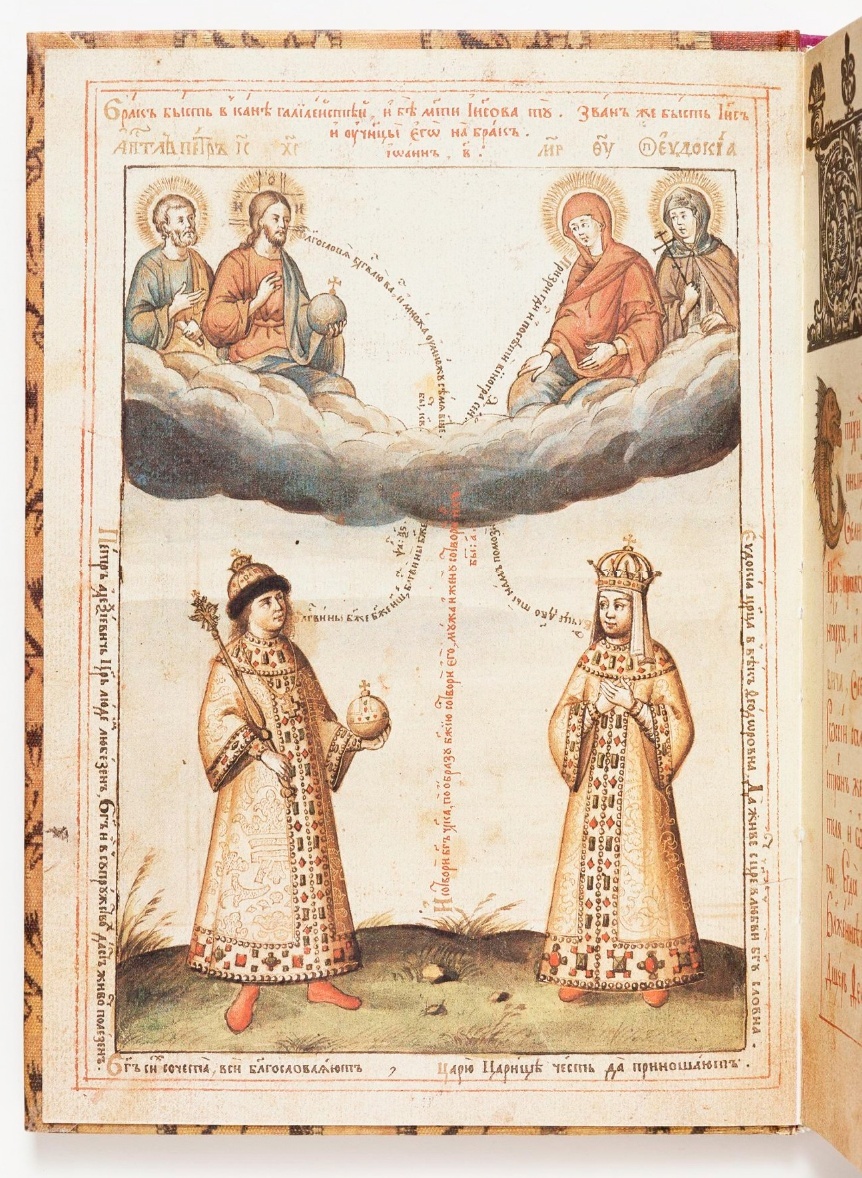 У Петра первого свадьба. Венчание 16-летнего Петра I (родился 30 мая (9 июня) 1672 года) и 19-летней Евдокии Фёдоровны Лопухиной состоялось 6 февраля (27 января) 1689 года. Невесту для 16-летнего жениха подбирала его мать царица Наталья Кирилловна.Сам жених в этом мероприятии не принимал участие - традиционных царских смотрин невесты не было. Сторонники Петра Алексеевича очень ждали его свадьбы, ведь по обычаям того времени женатый человек считался совершеннолетним. После заключения брака Петр имел возможность править самостоятельно без помощи регента, которым была его сестра – царевна Софья.