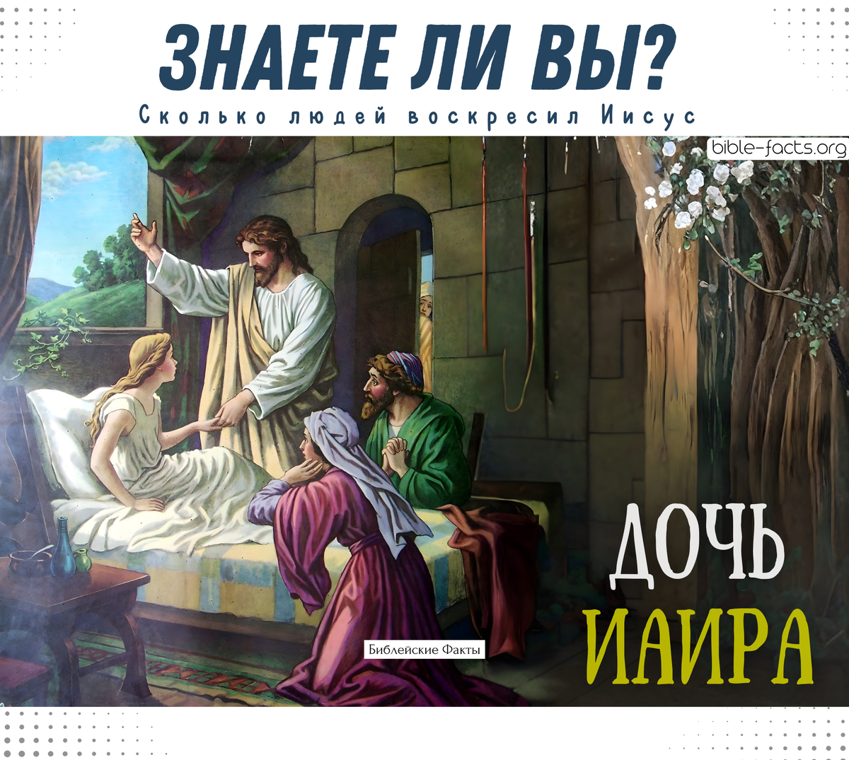 Согласно Евангелиям, Иисус воскресил три конкретных человека: дочь Иаира (Мк. 5:41), сына вдовы из Наина (Лк. 7:11‑15) и Лазаря (Ин. 11:43‑44). Важно: Евангелия также описывают, что Он совершал множество чудес и исцелений; среди них могли быть и другие случаи возвращения к жизни, но Библия их не называет, поэтому общее число может быть больше. Интересный факт: Сам Иисус воскрес, победив смерть. В момент Его смерти на кресте произошло ещё одно массовое воскресение: «гробы отверзлись; и многие тела усопших святых воскресли… и явились многим» (Мф. 27:52‑53). • Телеграмм канал (Библейские факты) • Больше интересных Библейских Фактов (VK) • Библейские факты (сайт)