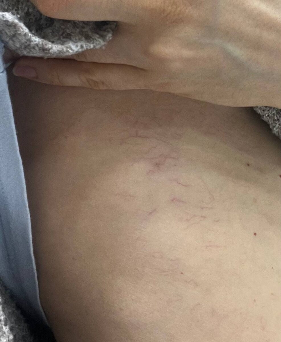 Подскажите, пожалуйста, от чего может быть такая сосудистая сетка на коже, где ребра по бокам (с обеих сторон)? Не болит, не беспокоит, уже давно такое.